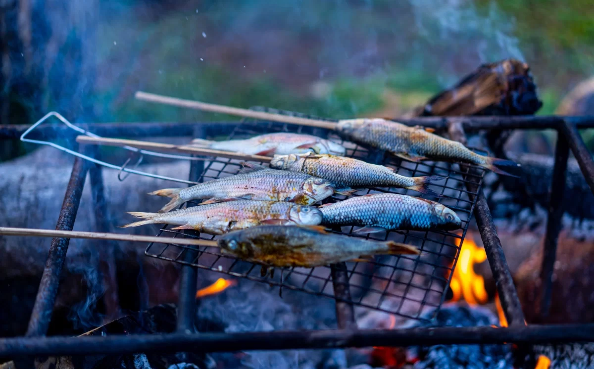 - Cá niên được bắt tại suối được nướng trên than hồng