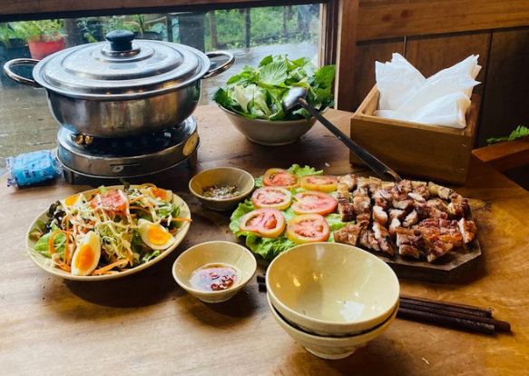 – Homestay phục vụ các món ăn từ gà, heo thả vườn đồi, rau rừng, cá sông suối.