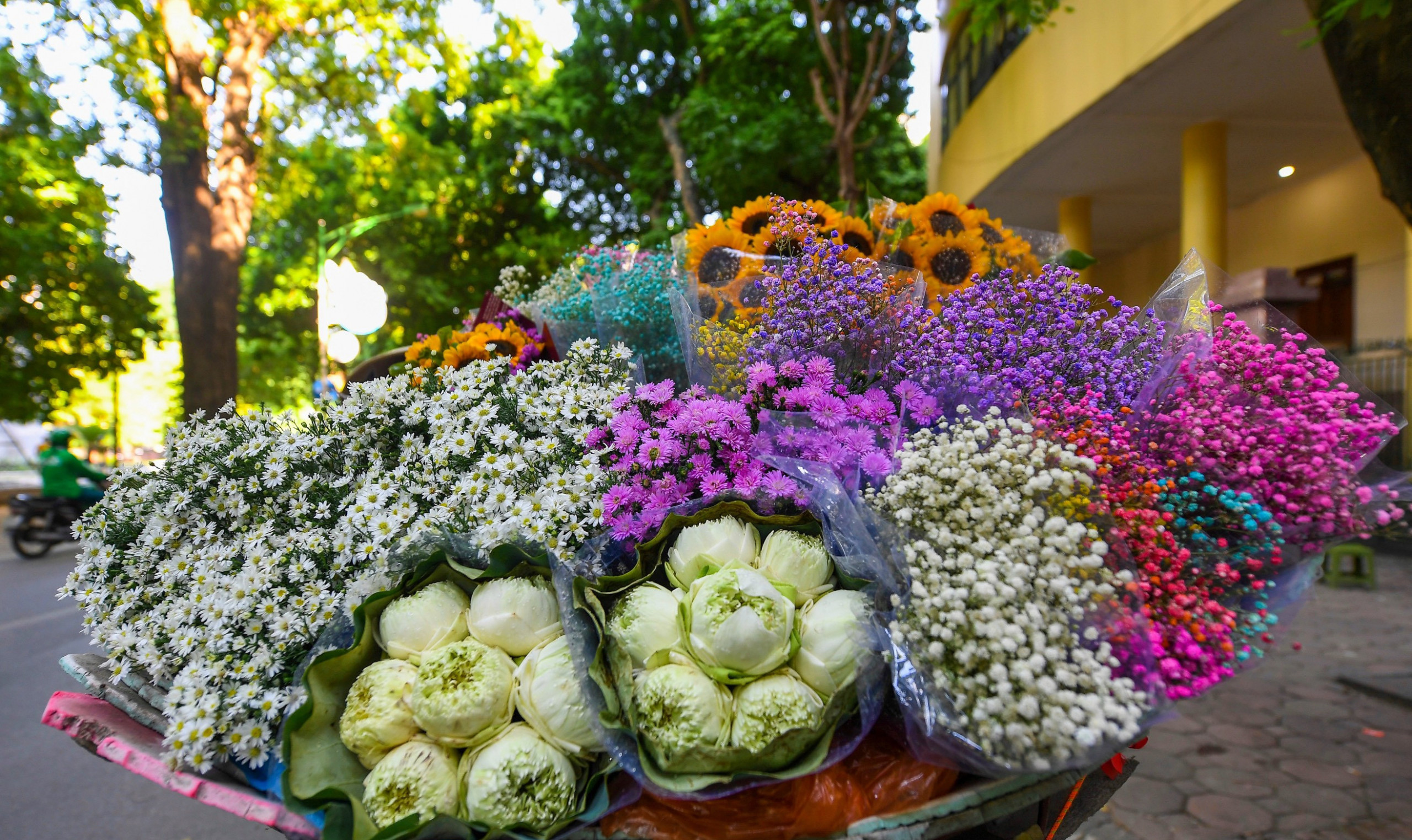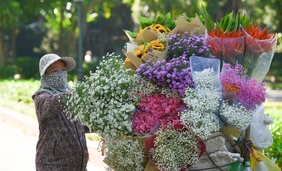 - Người dân bán hoa tại các đường phố Hà Nội