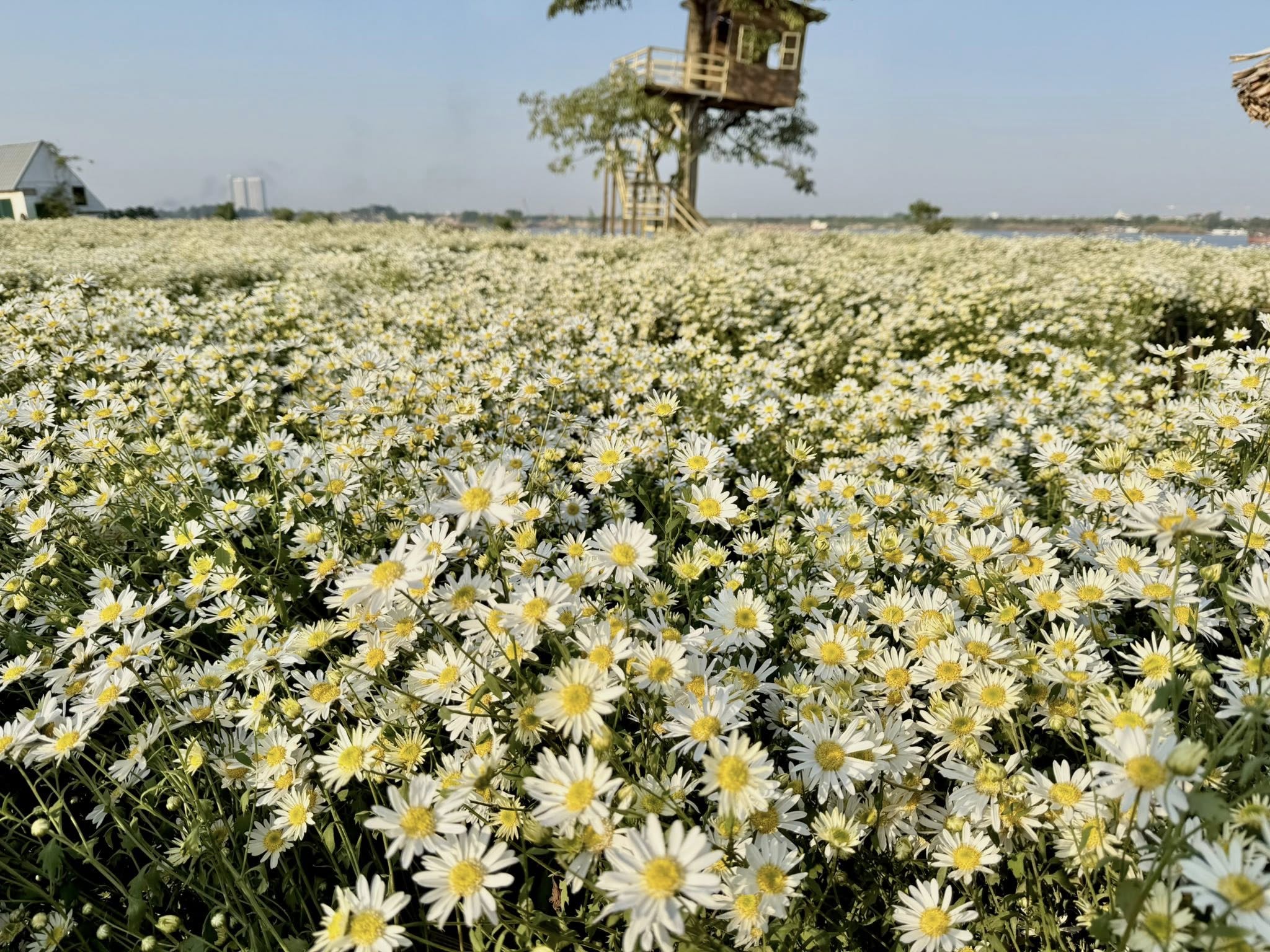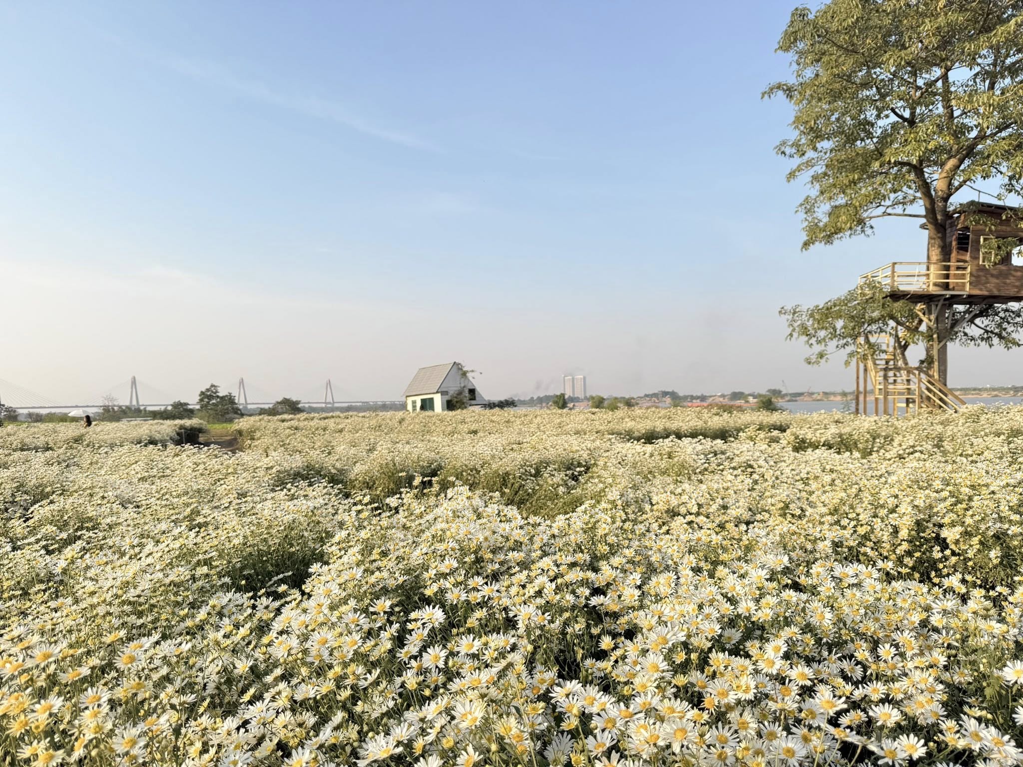 Từ tháng 10 – tháng 12, Hà Nội trở nên tinh khôi nhờ cúc họa mi trắng. Những chiếc xe đạp chở đầy hoa len qua Yên Phụ, Hoàng Diệu, Nhật Tân tạo nên khung cảnh mềm mại, nhẹ nhàng. Hoặc các bạn đến trực tiếp các đồng hoa Quảng An, Tây Tựu, v.v,…. Mùa ngắn nhưng đẹp, đủ để khiến lòng người rung động khi trời chuyển lạnh.