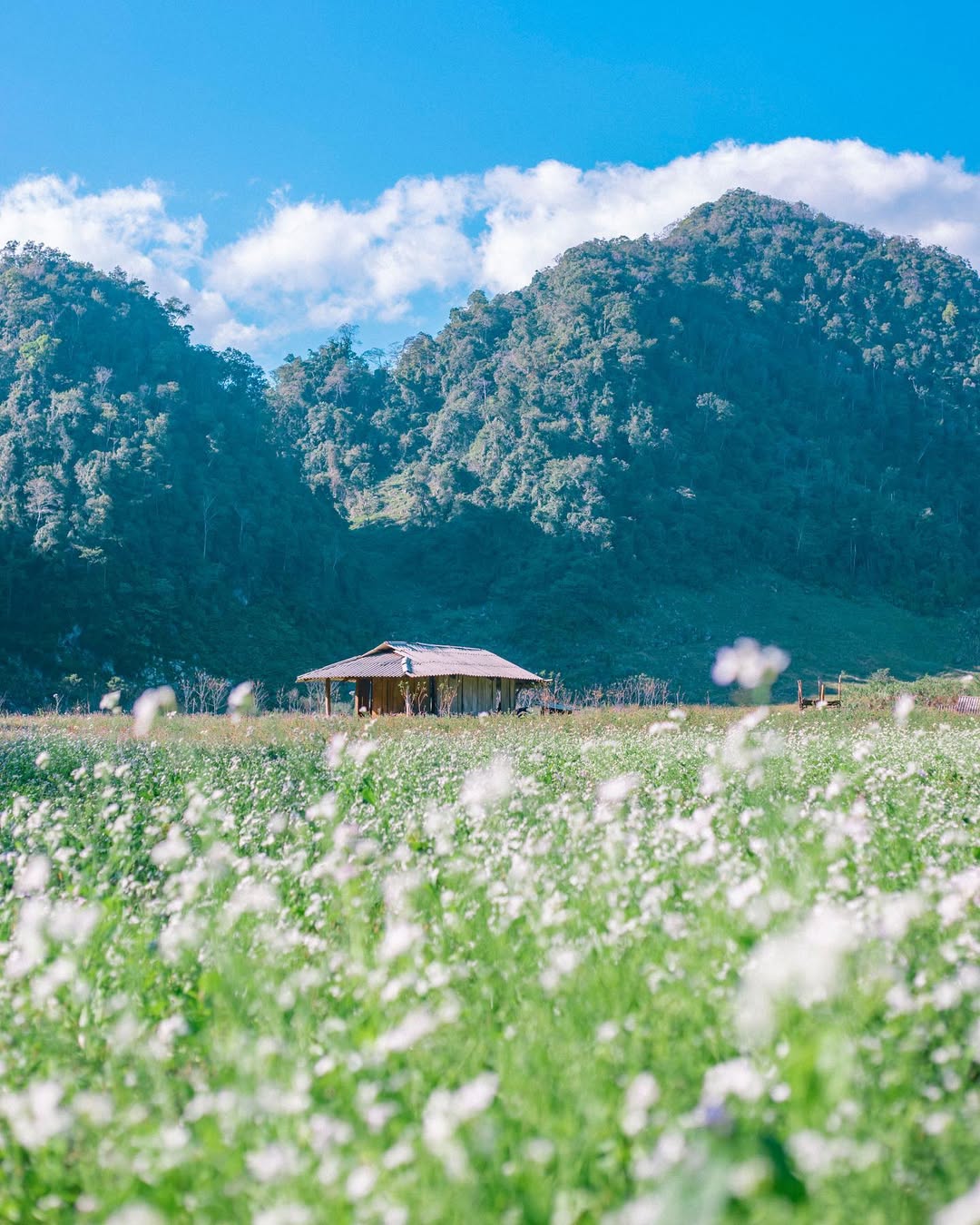 Tháng 11 – tháng 12, cải trắng phủ kín Pa Phách, Nà Ka và nhiều bản làng Mộc Châu. Sắc trắng tinh khôi trải dài dưới nắng sớm tạo nên khung cảnh như một “biển mây dưới đất”, rất hợp để chụp những bộ ảnh mùa đông nhẹ nhàng.