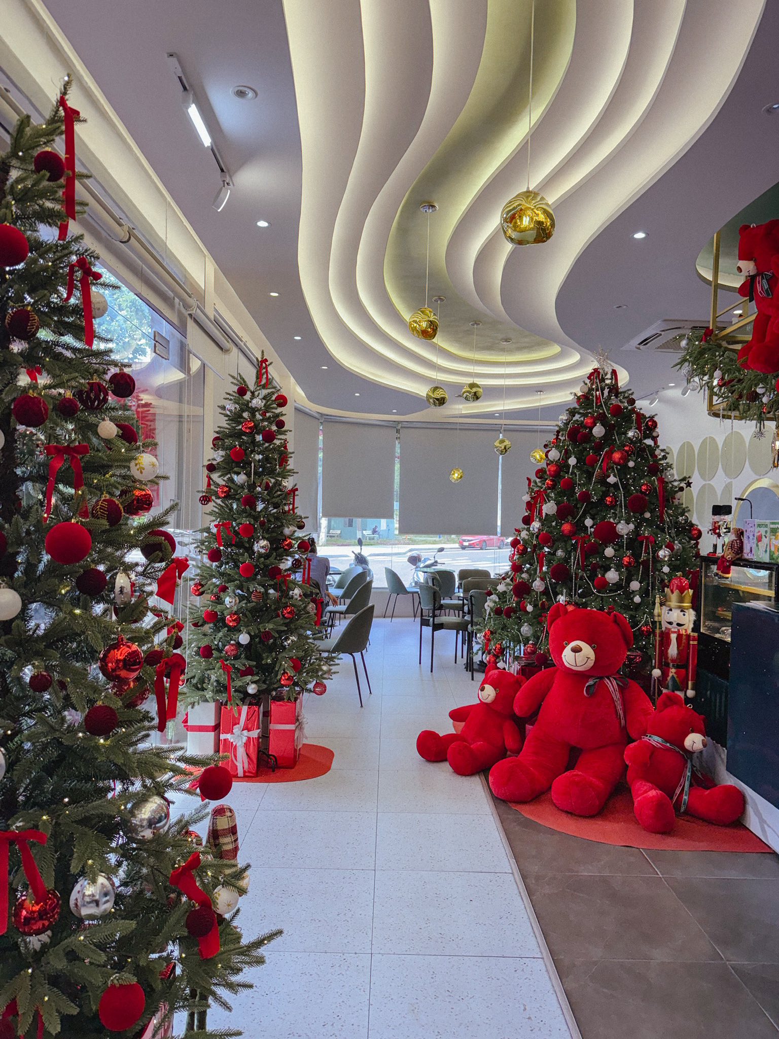 CAS Coffee mang nét sang trọng, với tone xanh lá – trắng chủ đạo. Mùa Giáng sinh, quán đầu tư decor chu đáo: nhiều cây thông lớn, background sống ảo, các chú gấu tuyết trắng và ánh đèn lung linh. CAS rất phù hợp để chụp ảnh couple, gia đình hoặc nhóm bạn vì quán rất rộng và ánh sáng đẹp cả ngày.